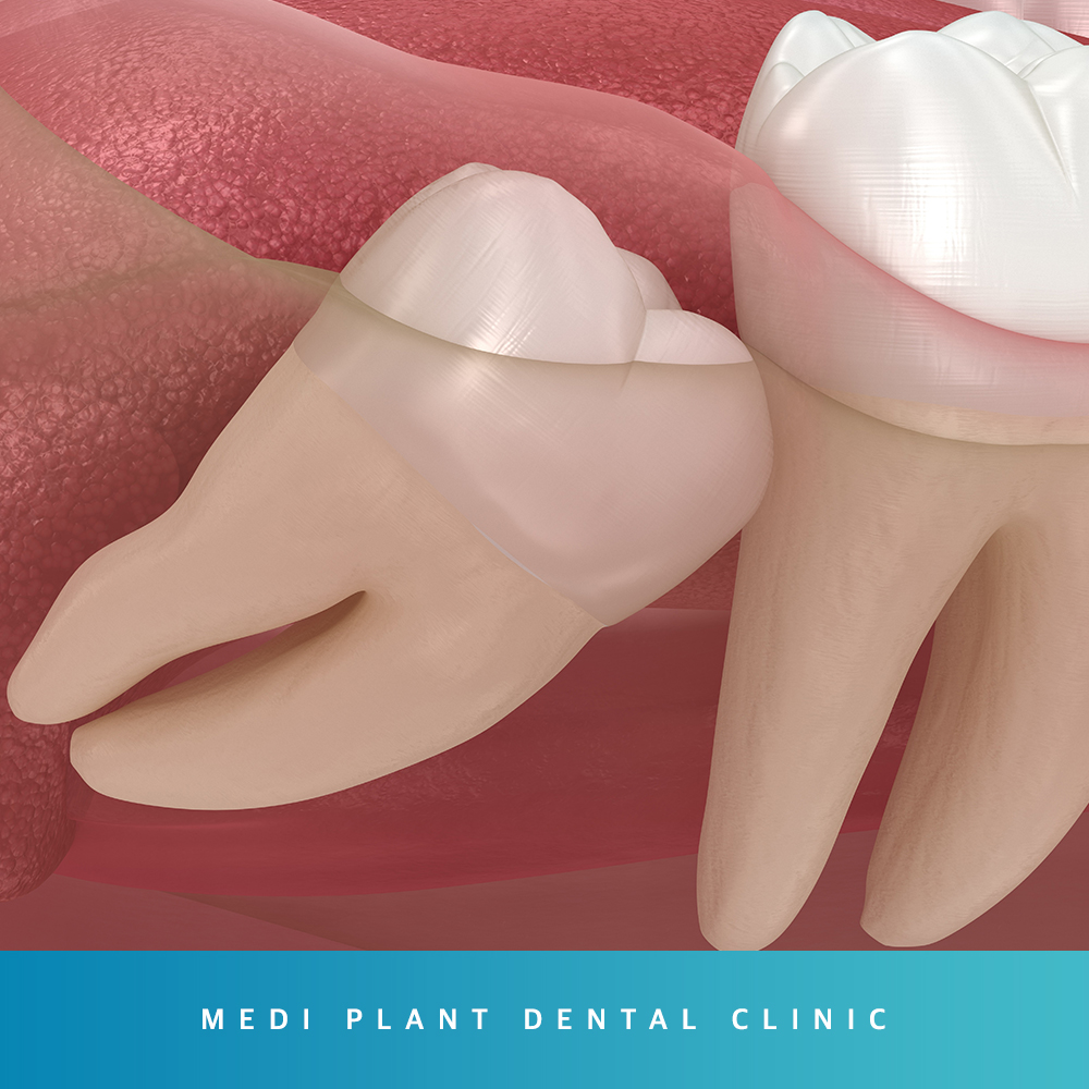 잇몸 뼈 안에서 사랑니가 옆으로 자라면서